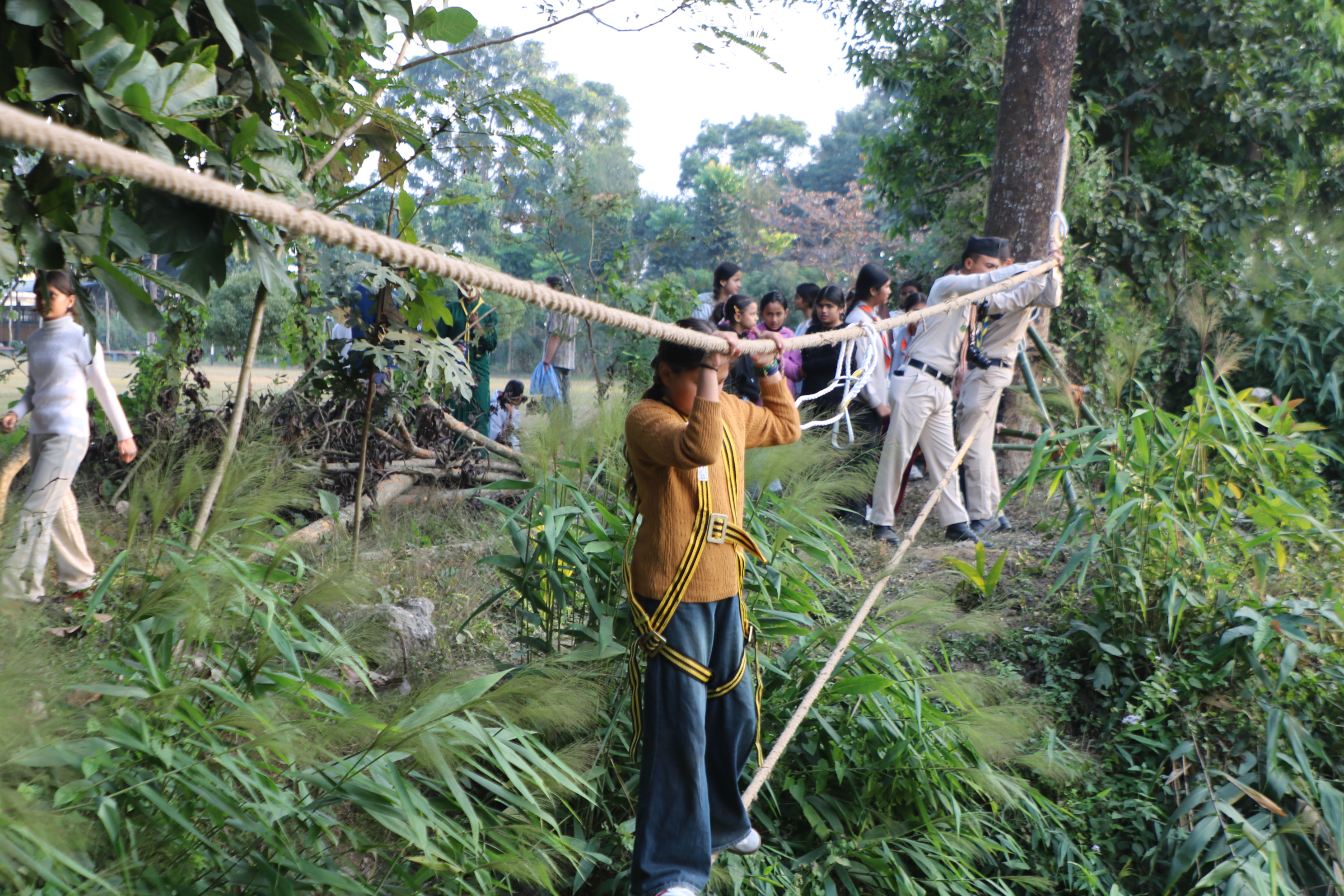 In addition to classroom learning, scouts participated in several challenging and adventurous activities, including Omega Jump (zip line), crawling, bamboo balancing, and commando bridge, which helped build confidence, teamwork, and physical fitness.